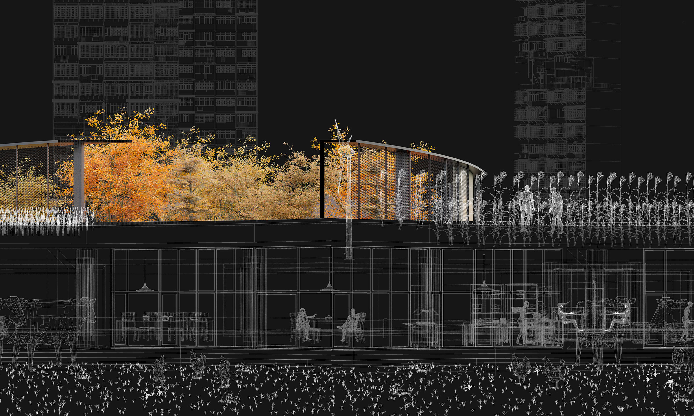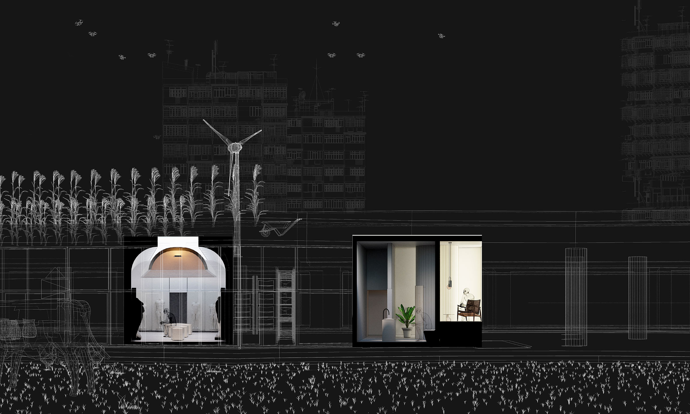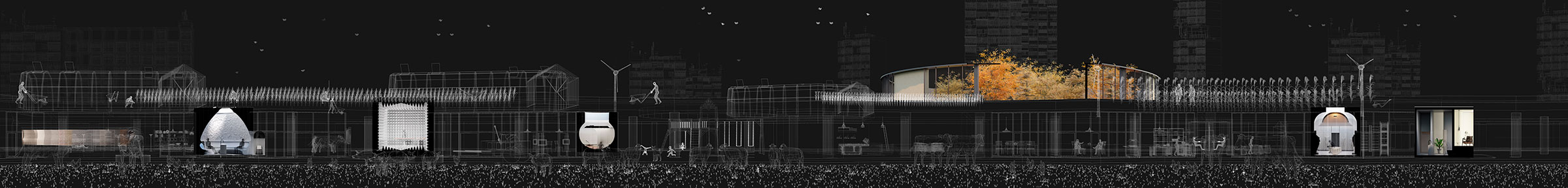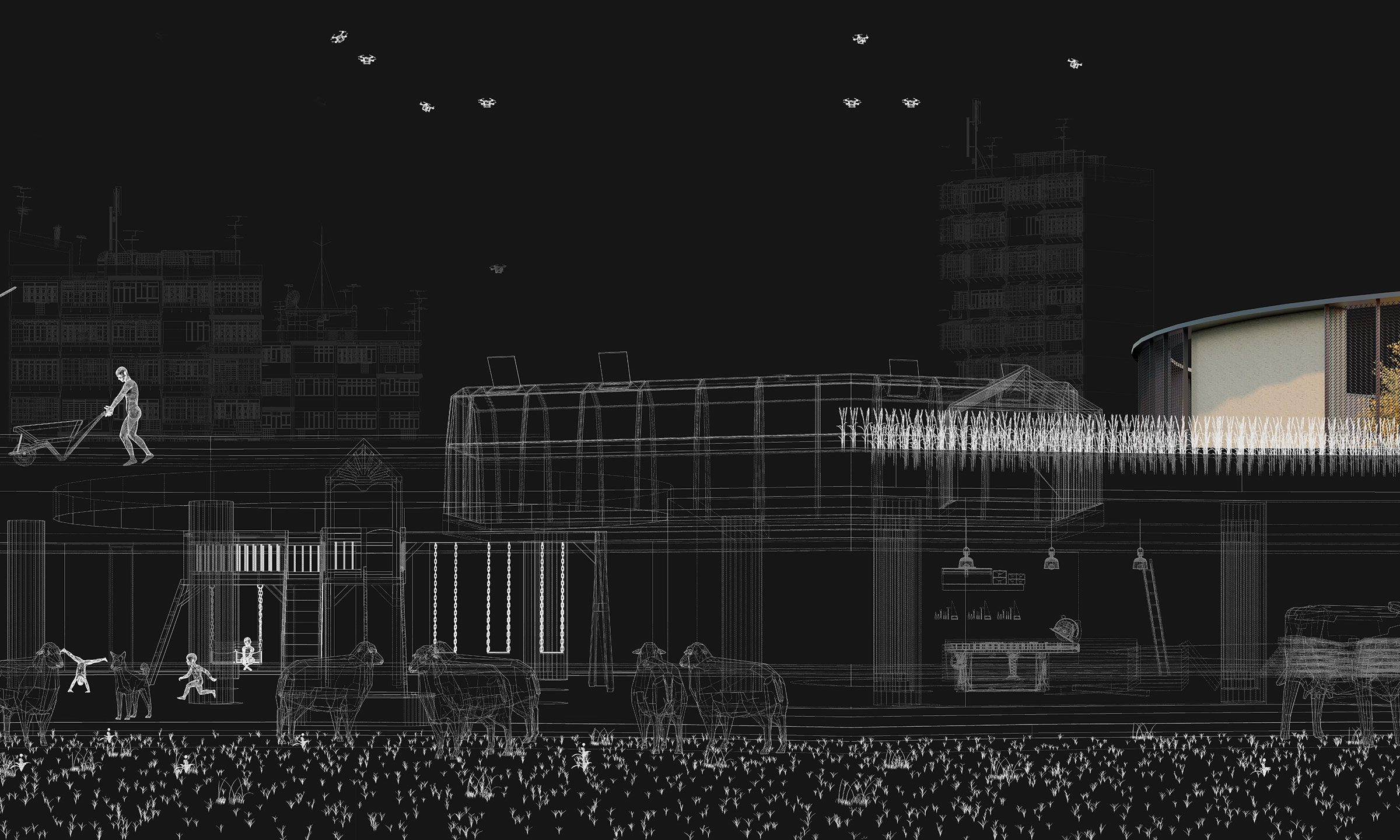 Automation city is a result of our research which started with a mind map of references. Diving into this matter, we asked ourselves where automation in a city will lead? What kind of scenarios would this bring to existing urban fabrics, and which conflicts could this produce? We gathered the references into a mind map and grouped them by the nature of the subject. While doing this, we started making small speculative concept sketches that made connections in-between these groups. By reiterating this process, these concept sketches became hybrids fusing our imagination with the gathered information. In this process of putting two hybrids next to each other, a new one emerges. Using this mind map as a tool and combining these small hybrids, a futuristic city arises, becoming a big hybrid. This city is a result of repeated reflection and speculation. It doesn’t form a utopic nor a dystopic image but rather a heterotopia. The city is a hybrid of individual opinions, which results in an unbiased representation of a city.